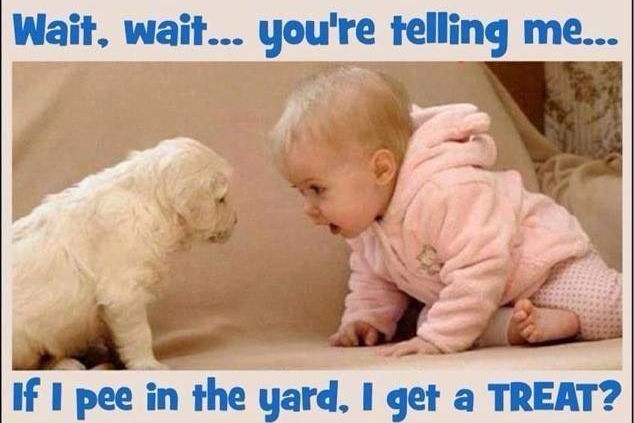 Tags: baby, child, dog, humour, meme, pee, puppy, treat, wardhomesitters